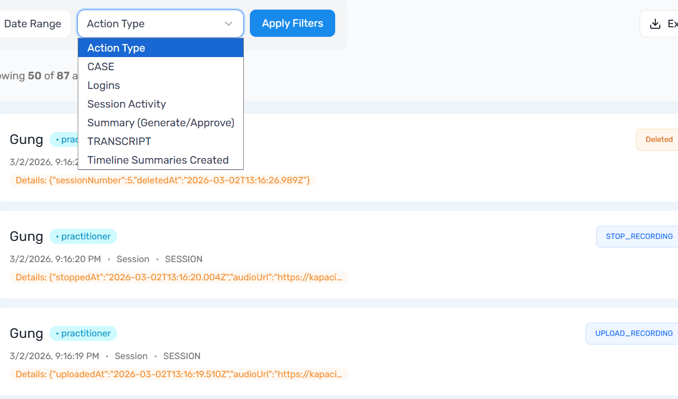 Every action in Kapacia is recorded — from transcription to verification — creating a verifiable trail for internal governance and regulatory review.